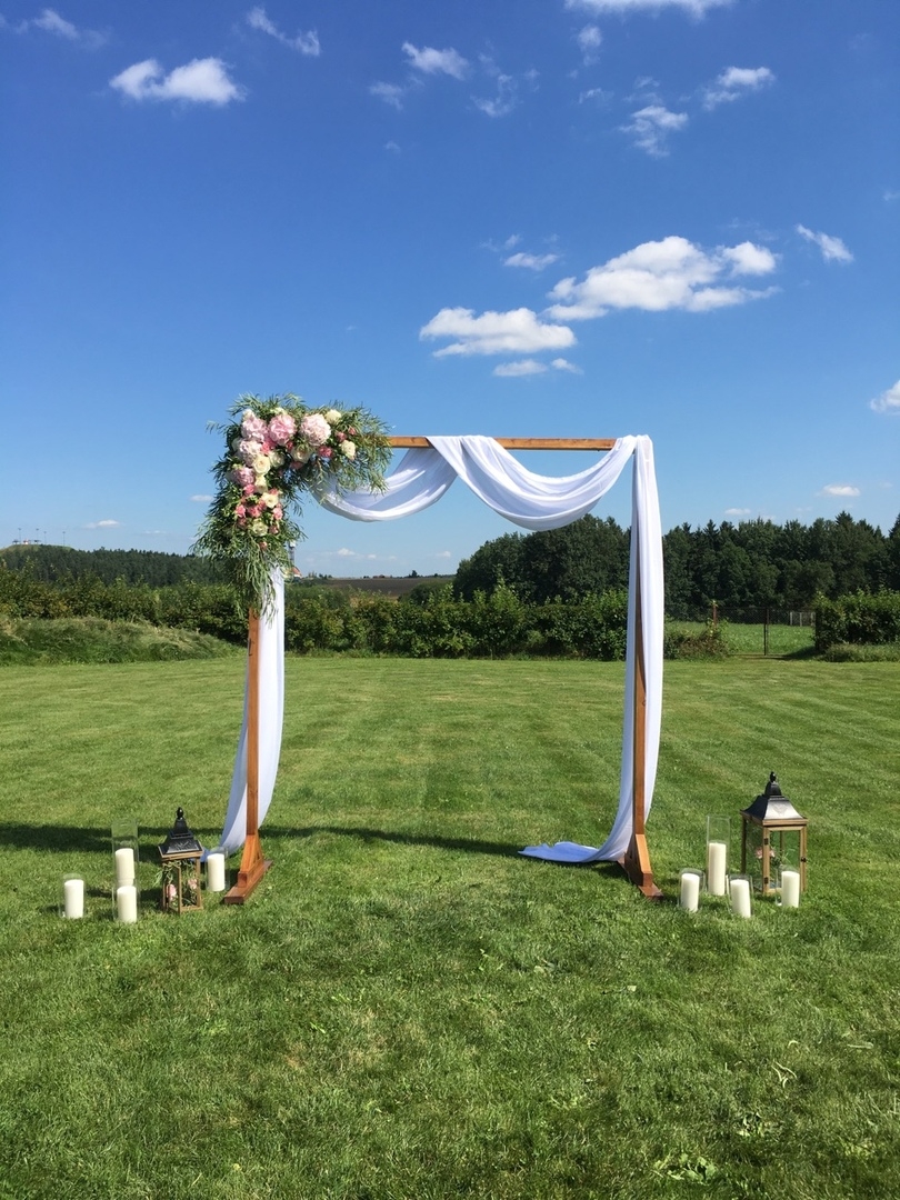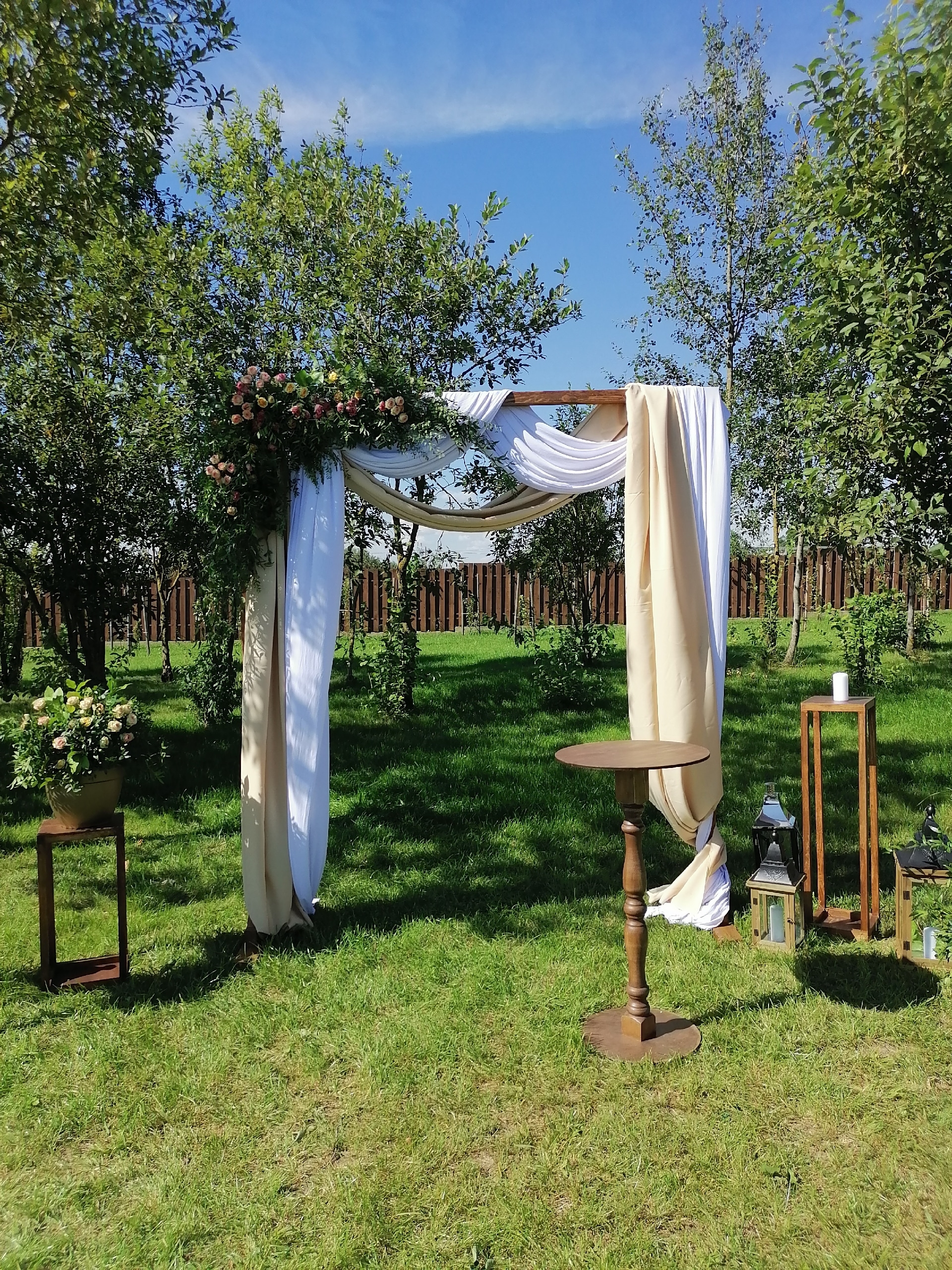 1.1 Арка прямоугольная или полукруглая, декорированная искусственными цветами, тканями, и (или) ретро гирляндой. При оформлении живыми цветами – стоимость считается дополнительно.